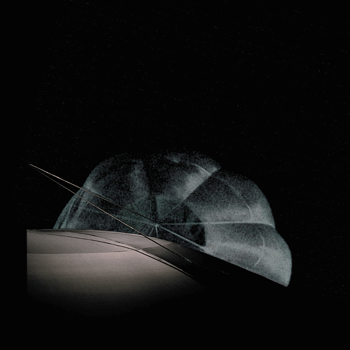 two large black silk 'umbrella - like' structures 5m in diameter are suspended with their lower edge 30cm above the floor