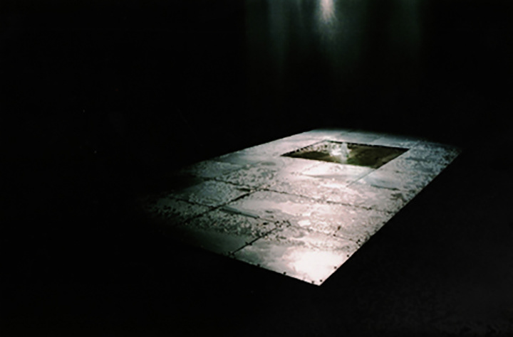steel plates, with plexiglass set in front, are fixed to the walls behind the viewer